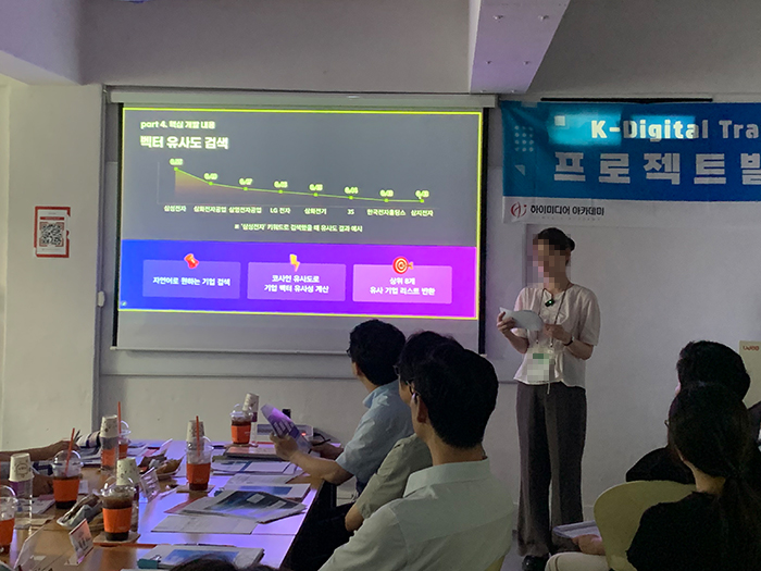 [강남] '심화_생성형 AI활용 인재양성' 부트캠프 과정 7기 프로젝트 발표회 안녕하세요.하이미디어 아카데미 강남캠퍼스에서'심화_생성형 AI활용 인재양성' 과정 7기 프로젝트 발표회가 있었습니다. 하이미디어 아카데미는 앞으로도 여러분의 취업을 위해 최선을 다하겠습니다. 감사합니다.