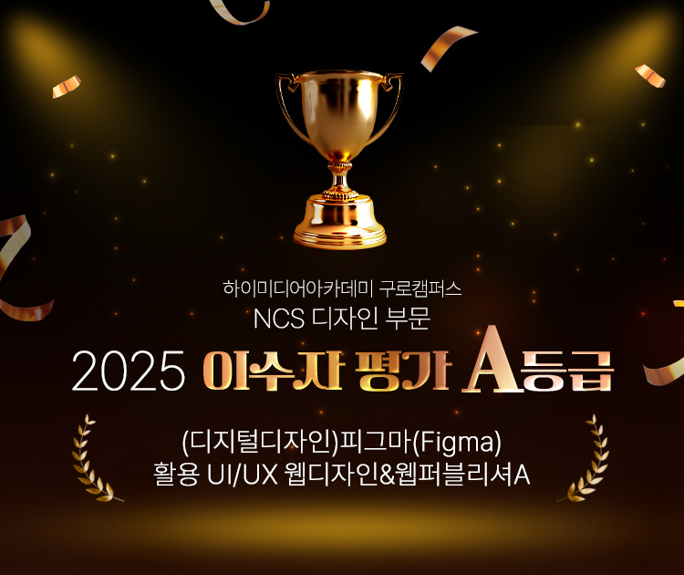 2025 이수자평가 A등급 획득 '(디지털디자인)피그마(Figma) 활용 UI/UX 웹디자인&웹퍼블리셔A'