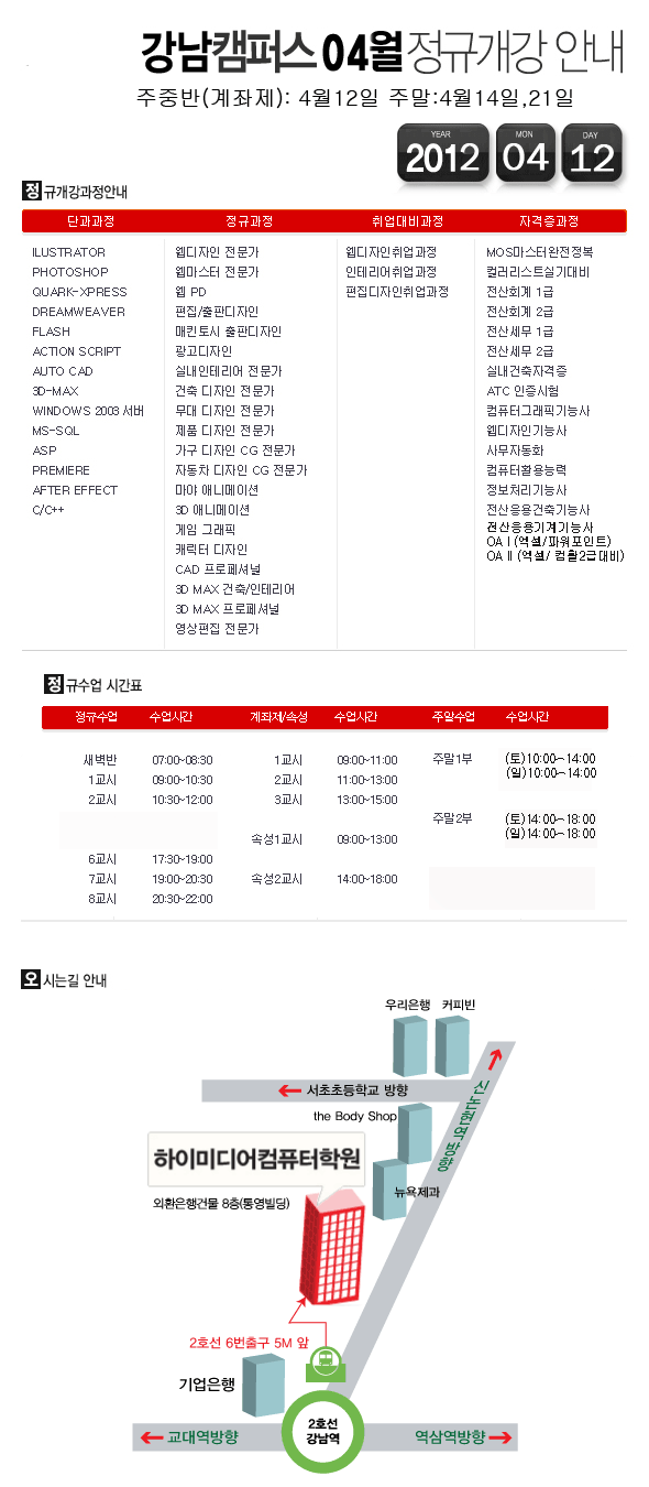 4월 정규반개강 안내