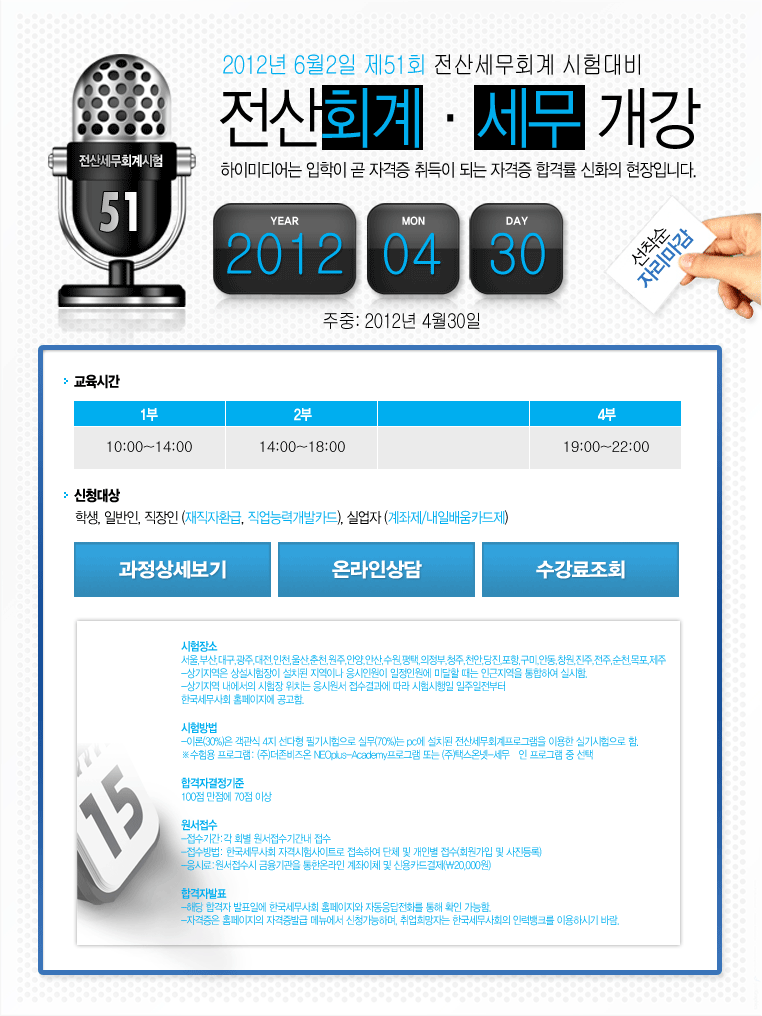 [6월2일 51회시험대비] 전산세무회계 4월30일개강!!
